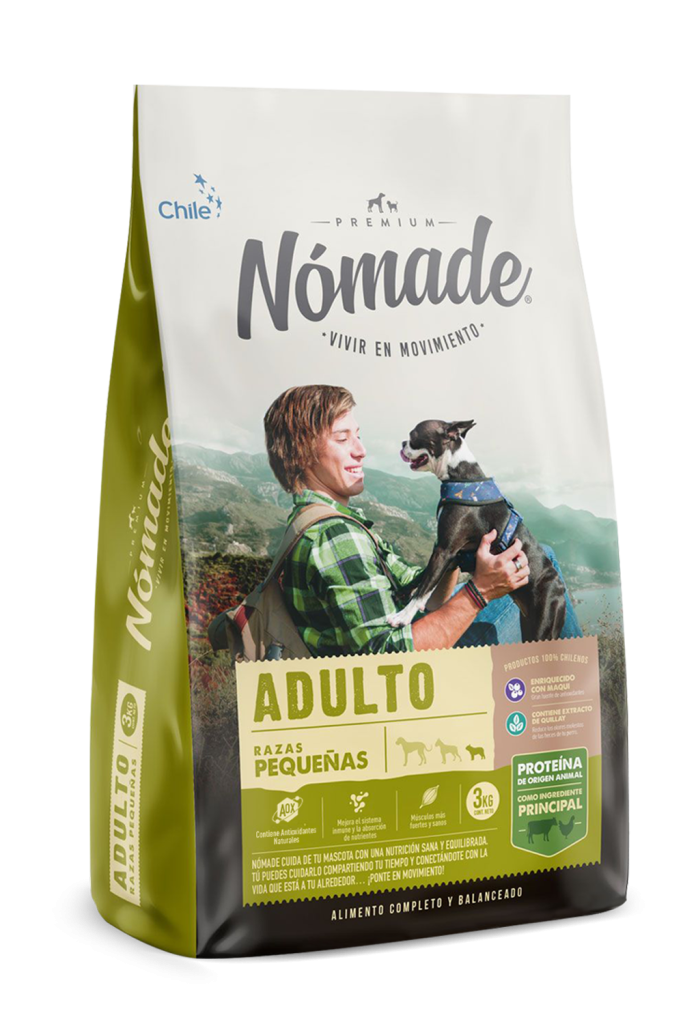 Nómade es un alimento para perros adultos de razas pequeñas desarrollado por expertos en nutrición animal.